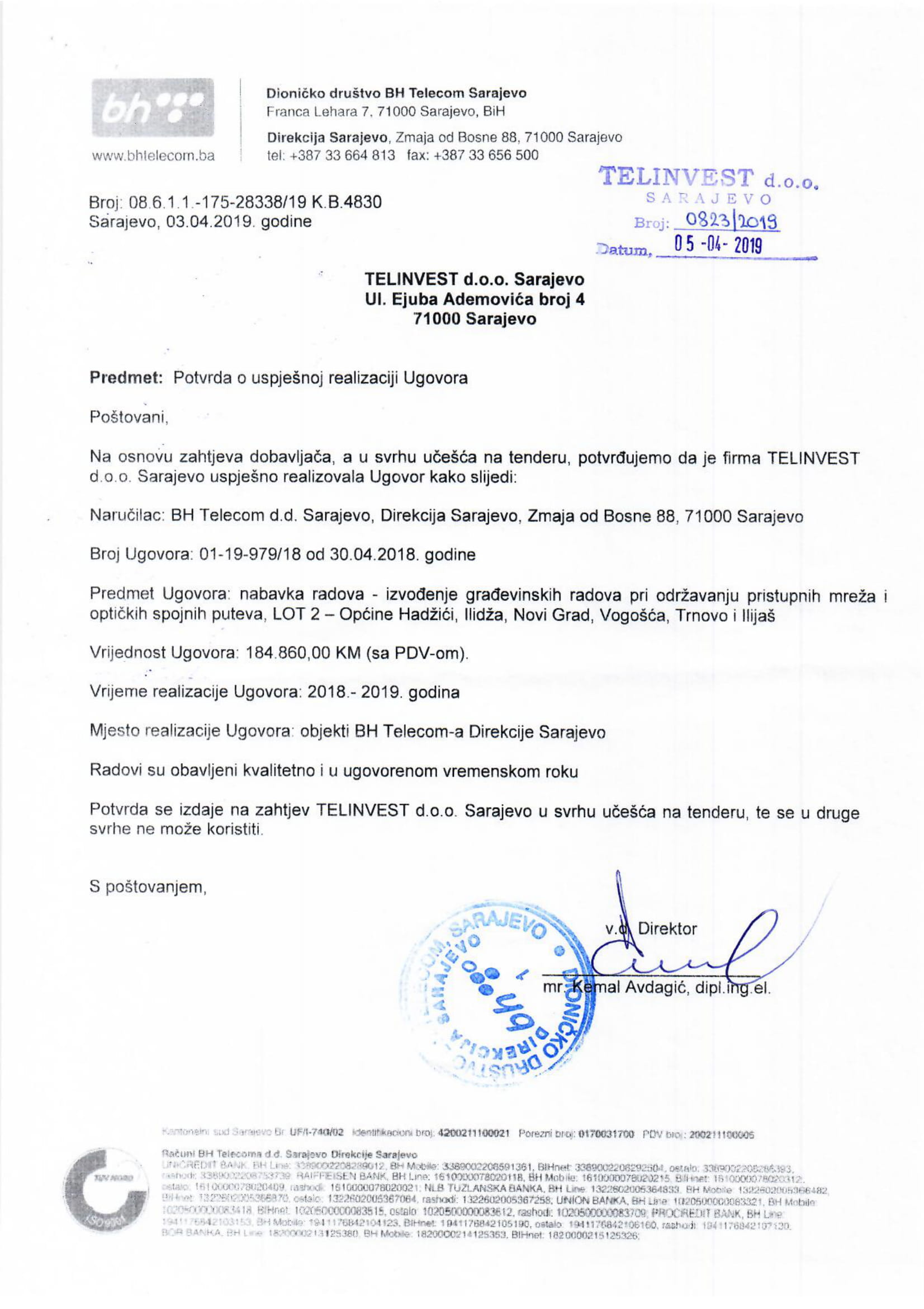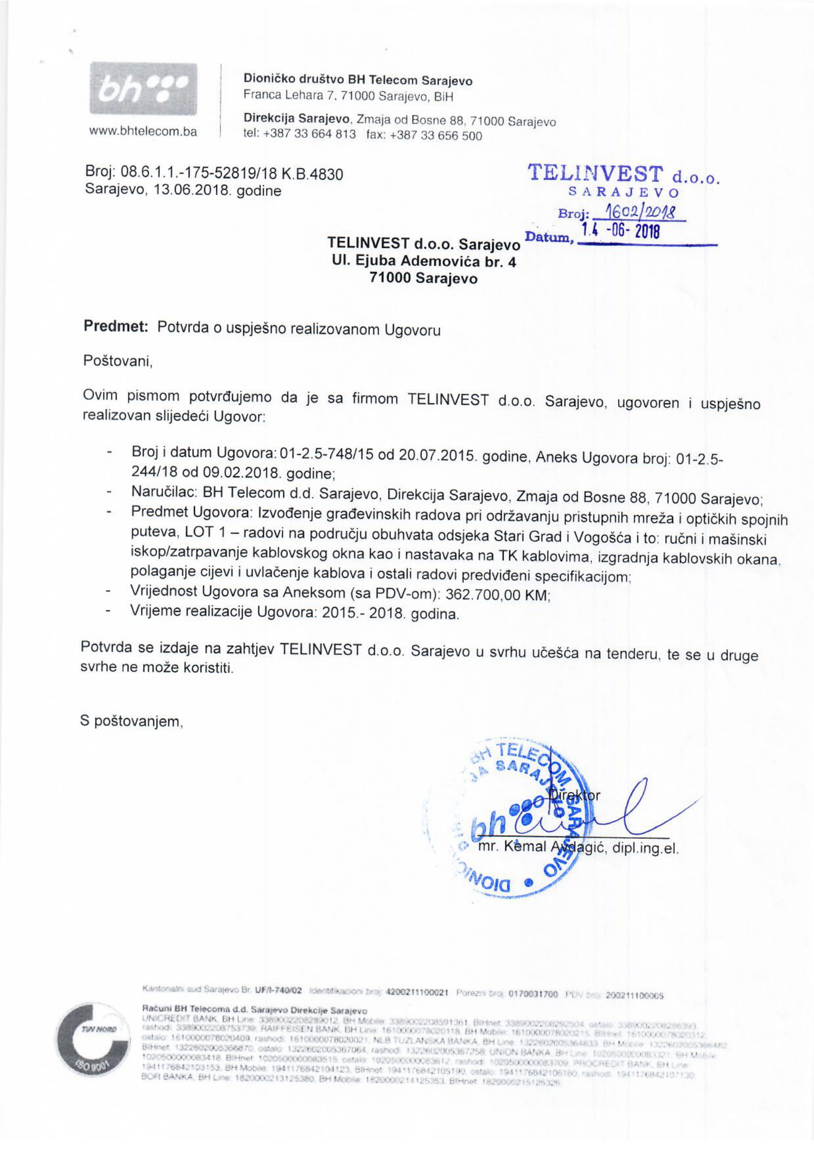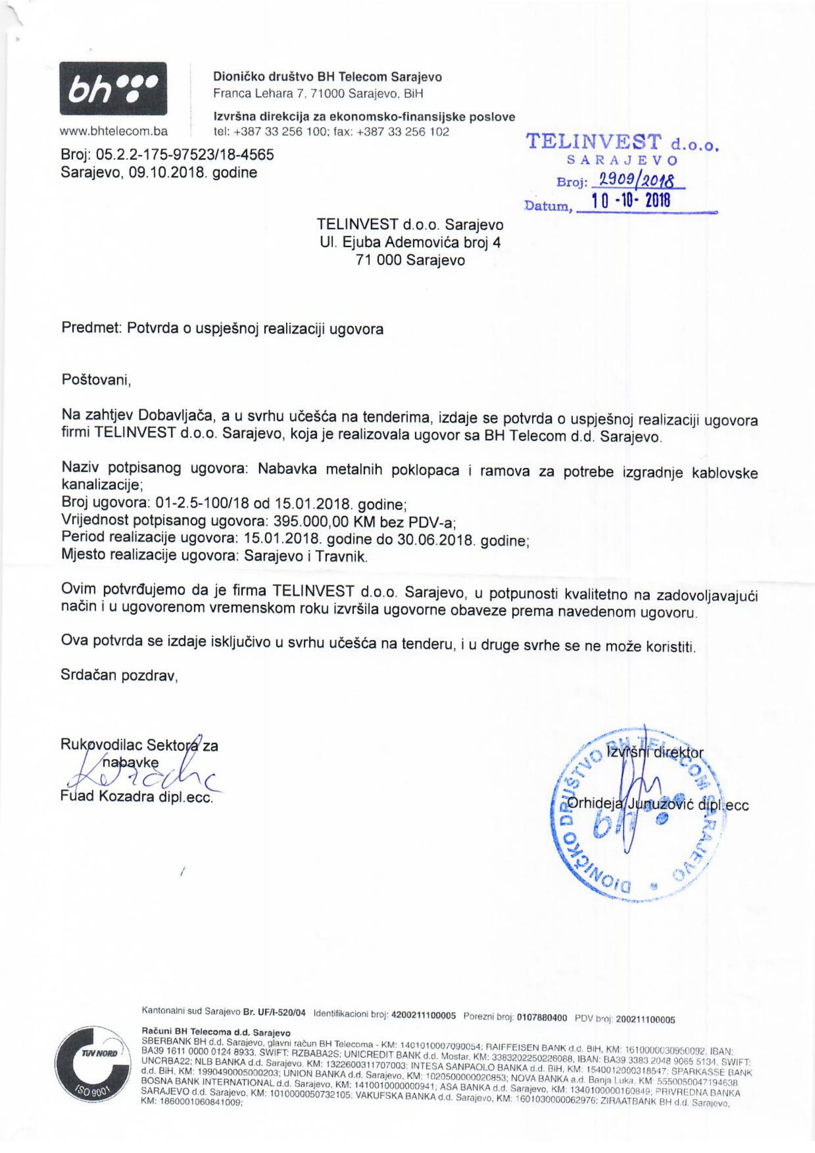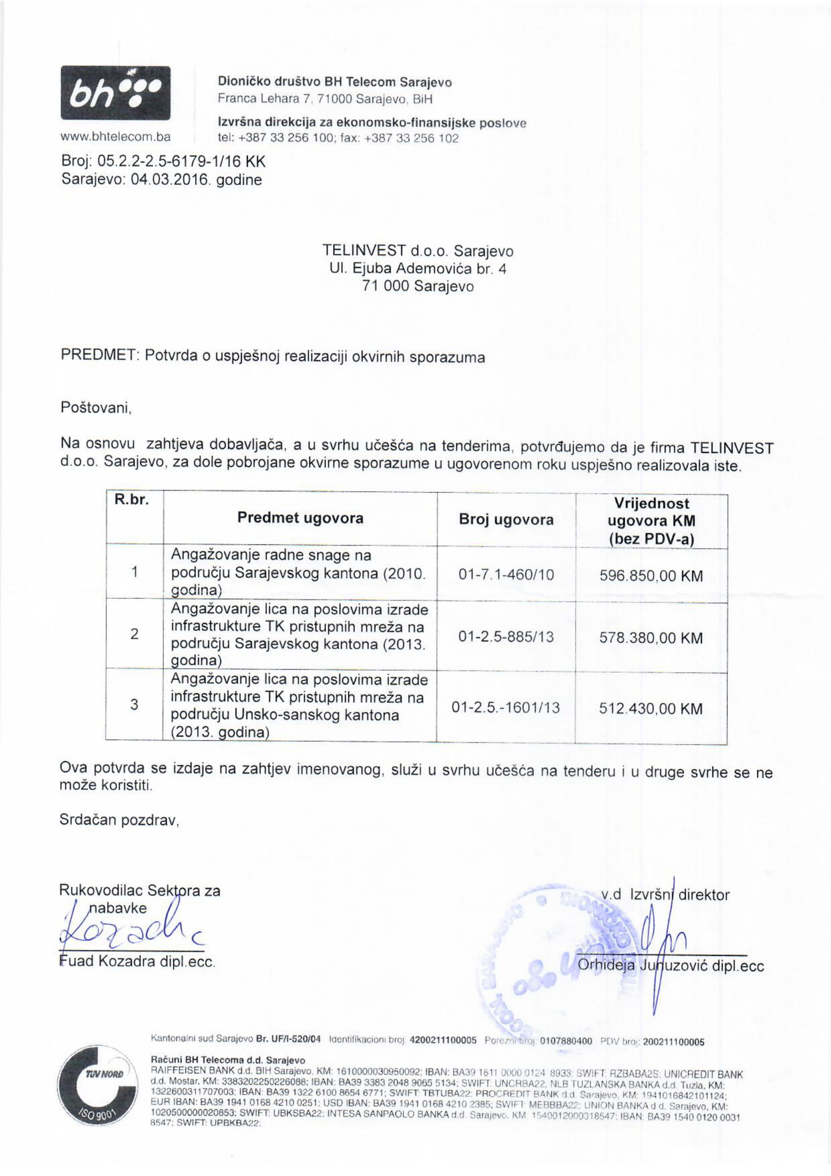 BH TELECOM D.D. TELECOM INŽENJERING Sar.