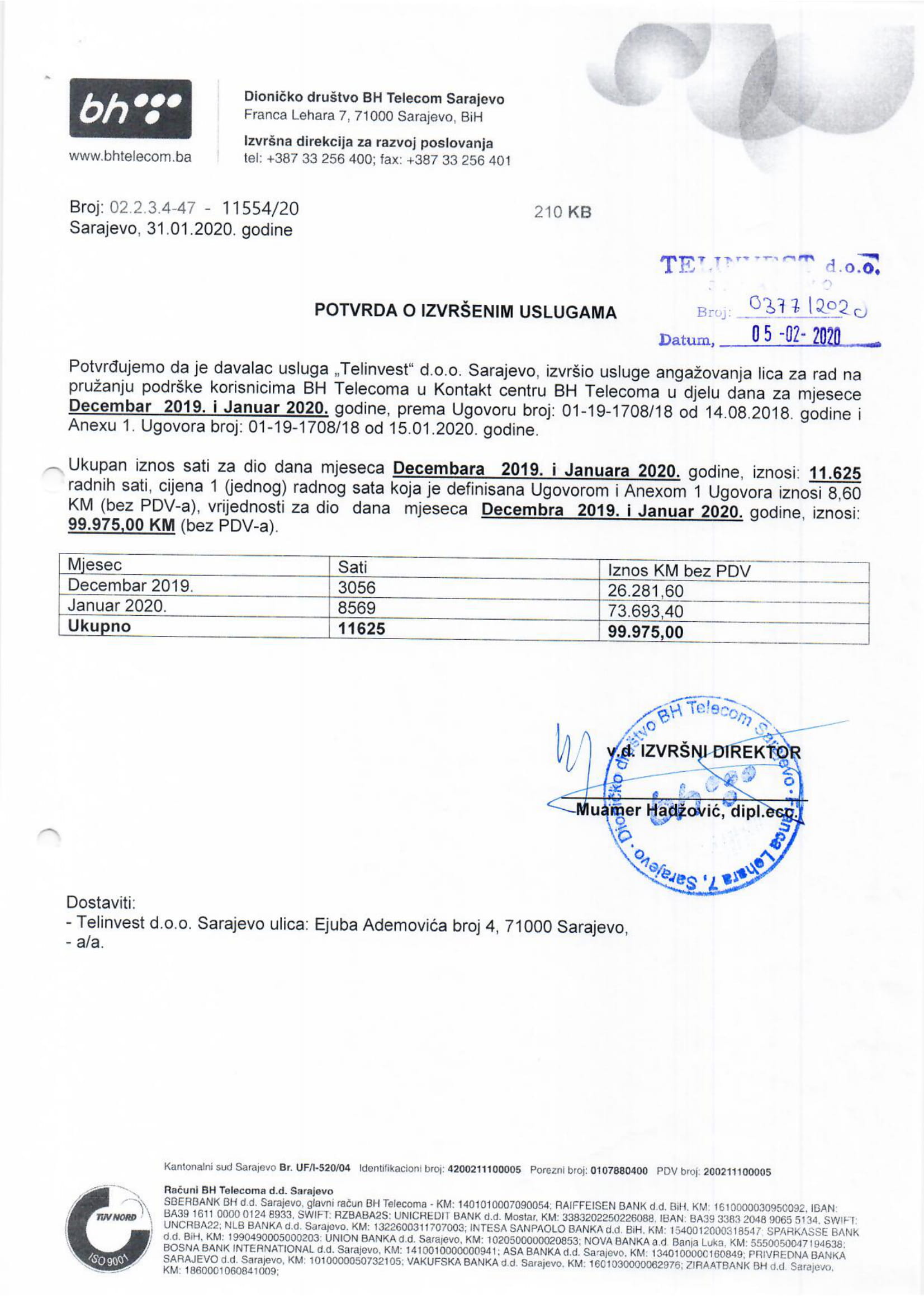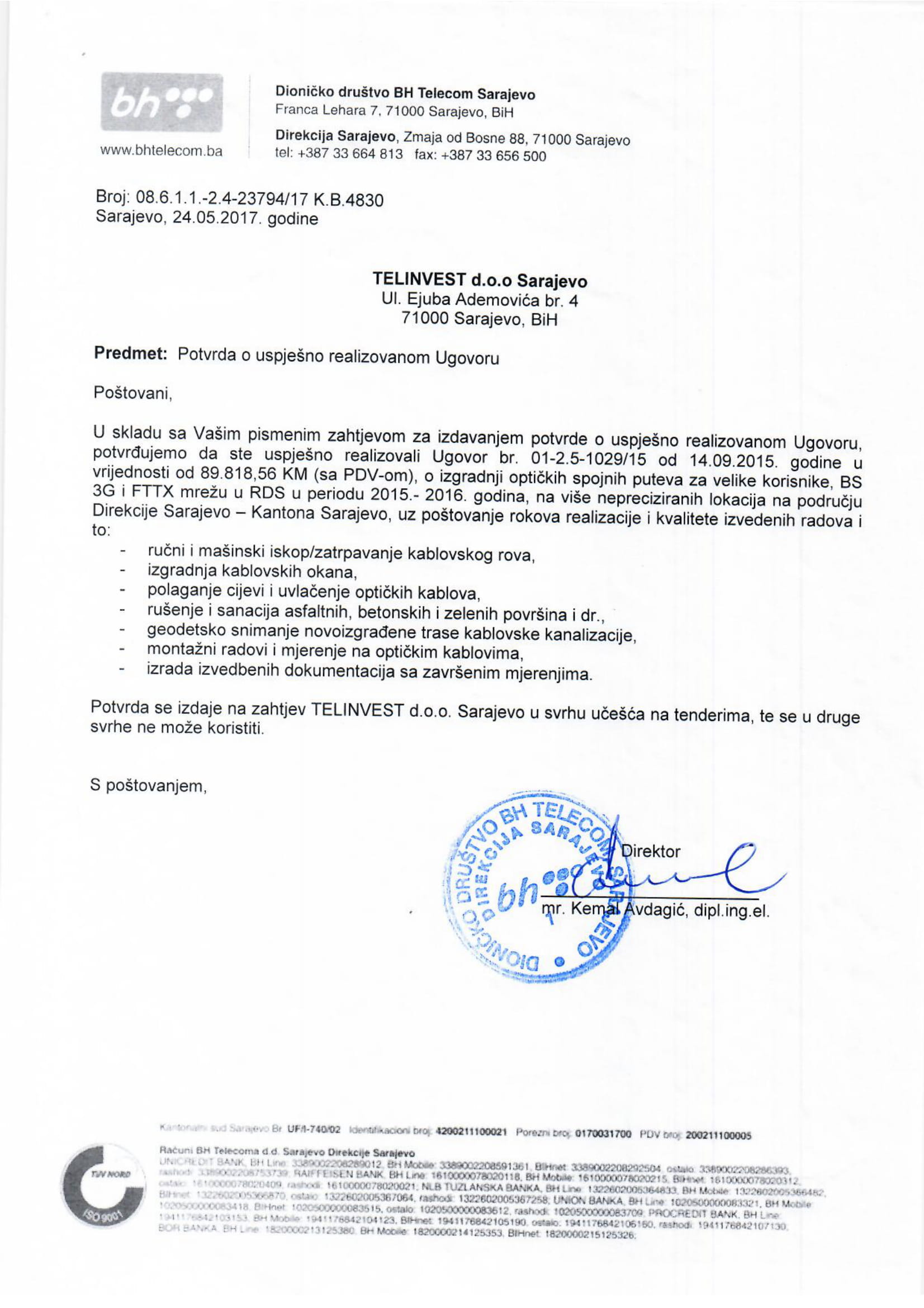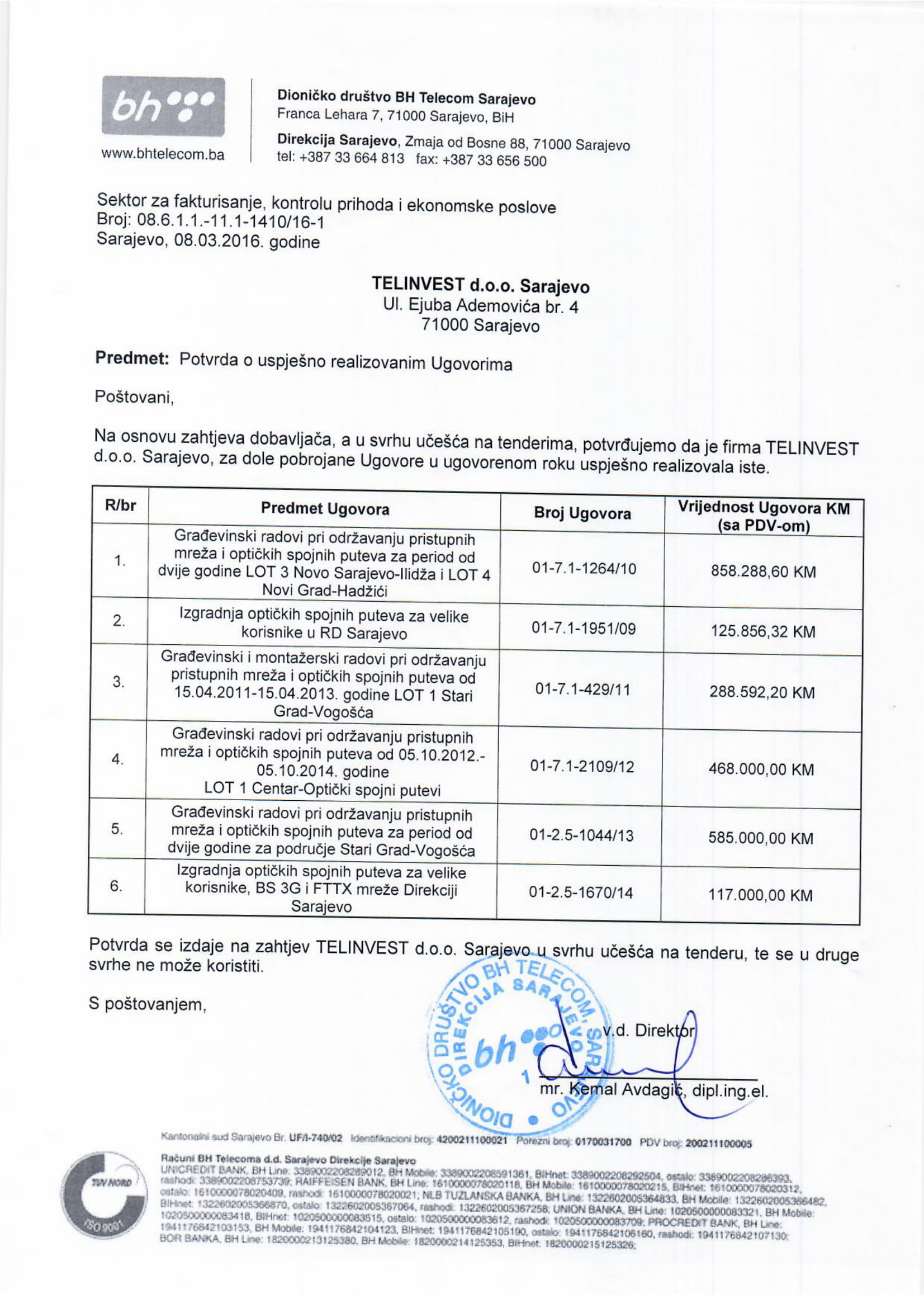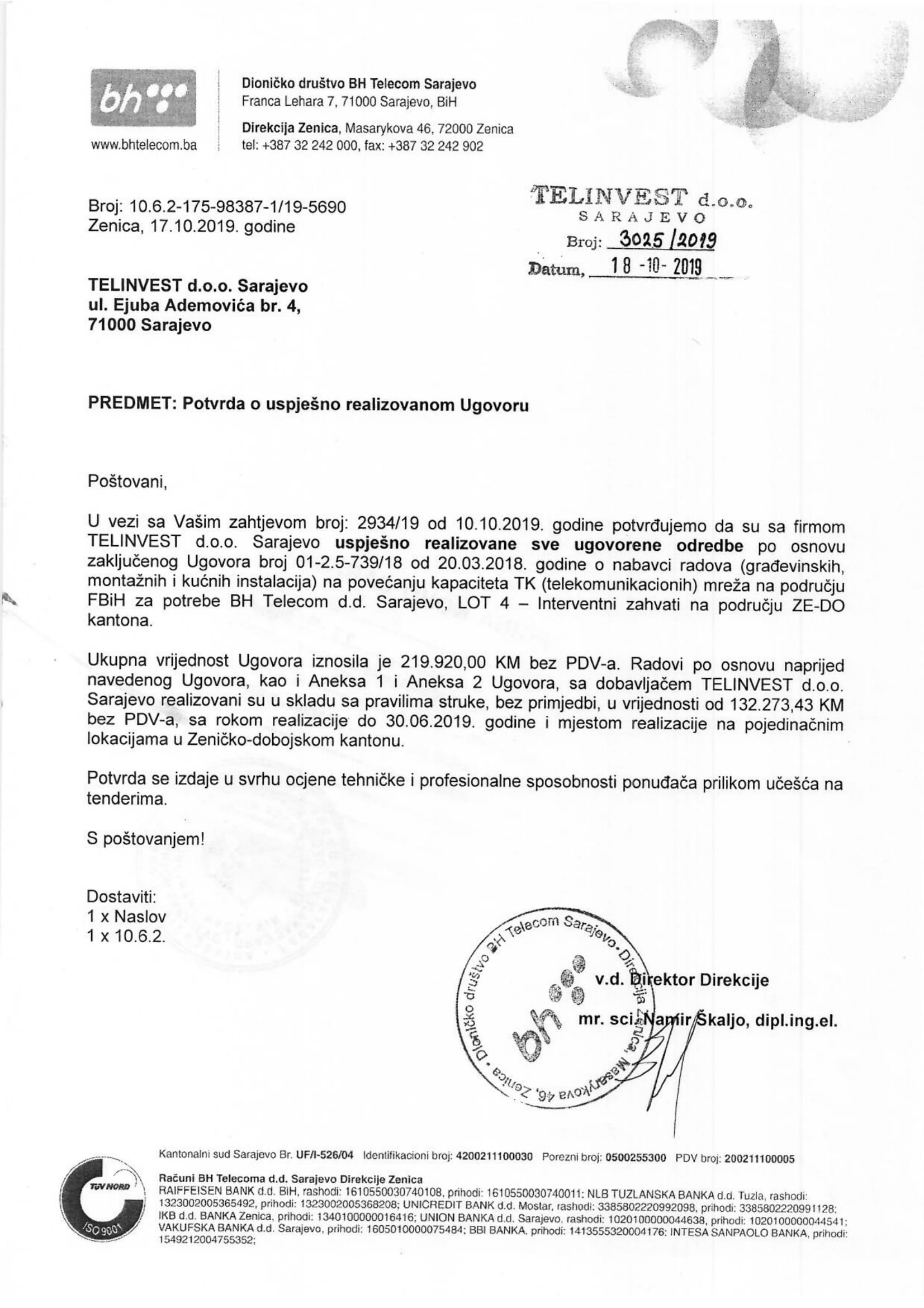 BH TELECOM D.D. TELECOM INŽENJERING Sar.