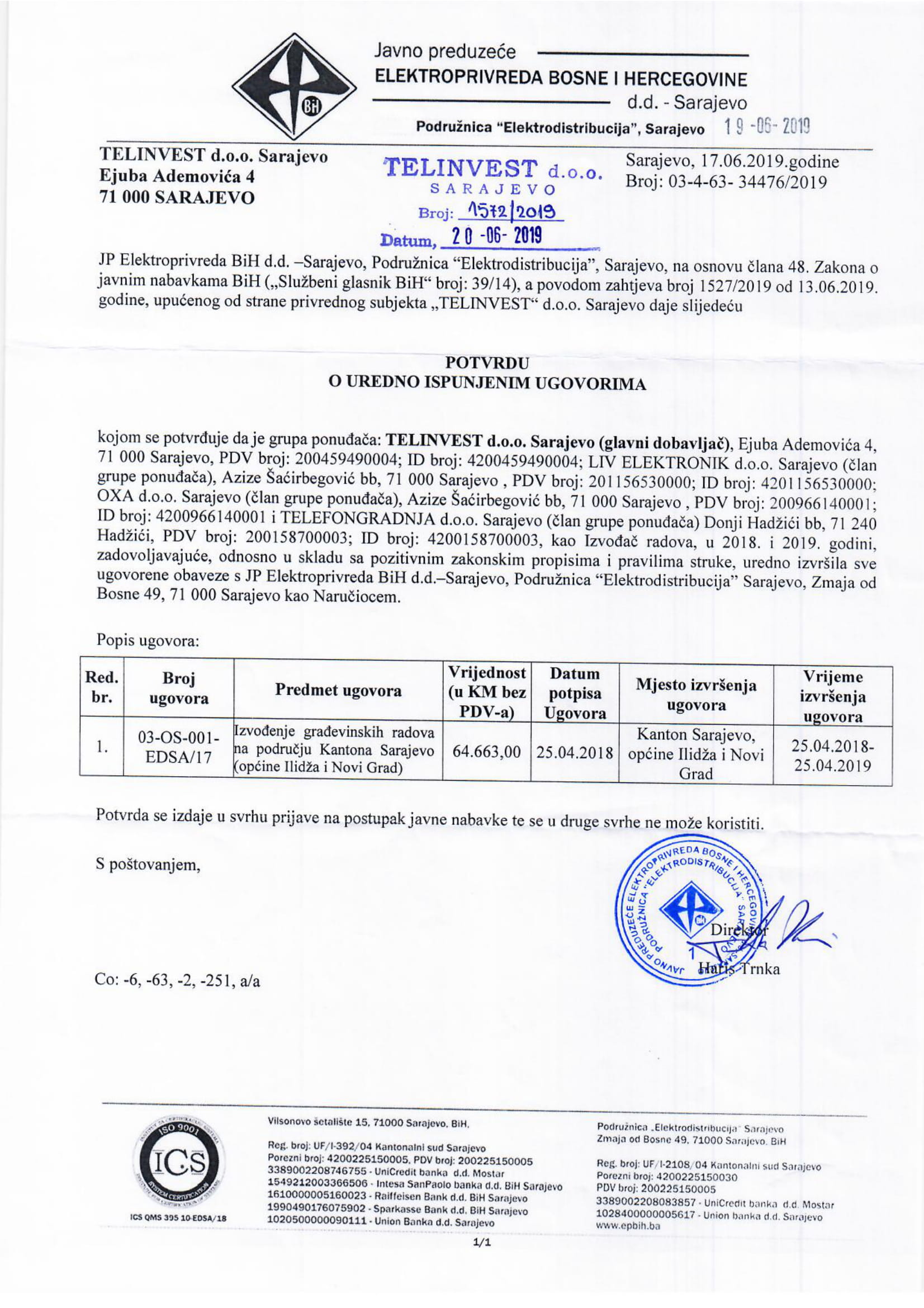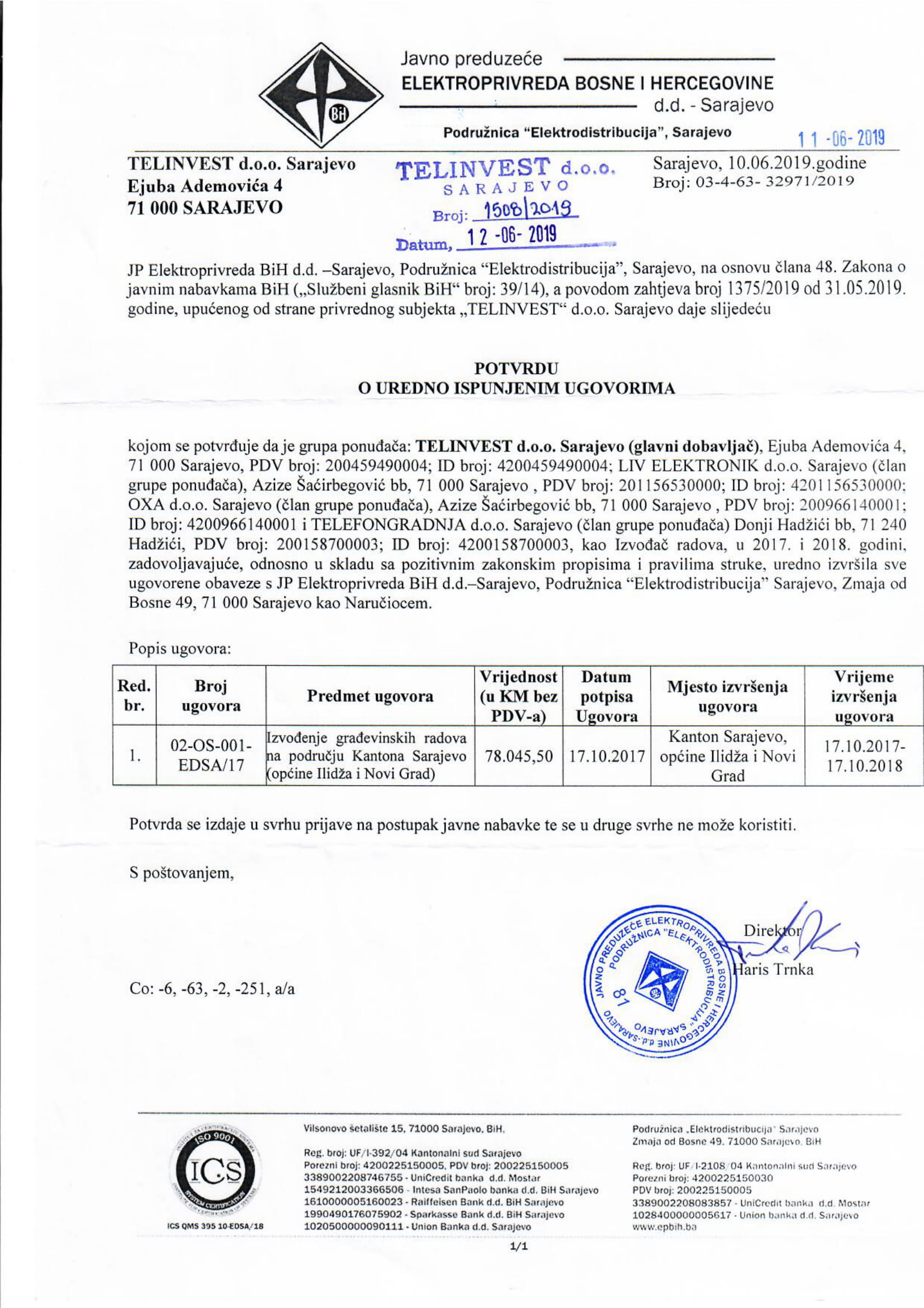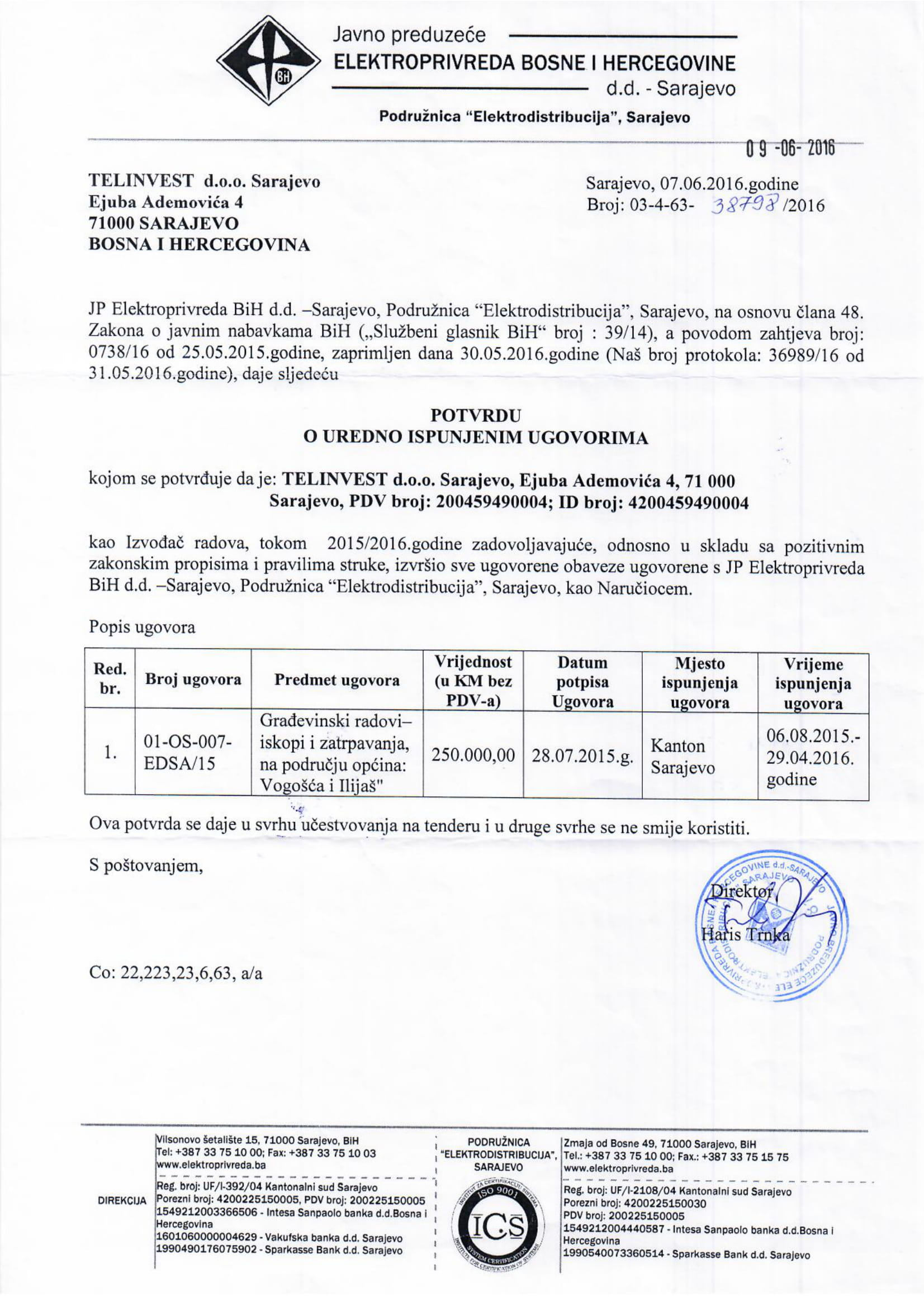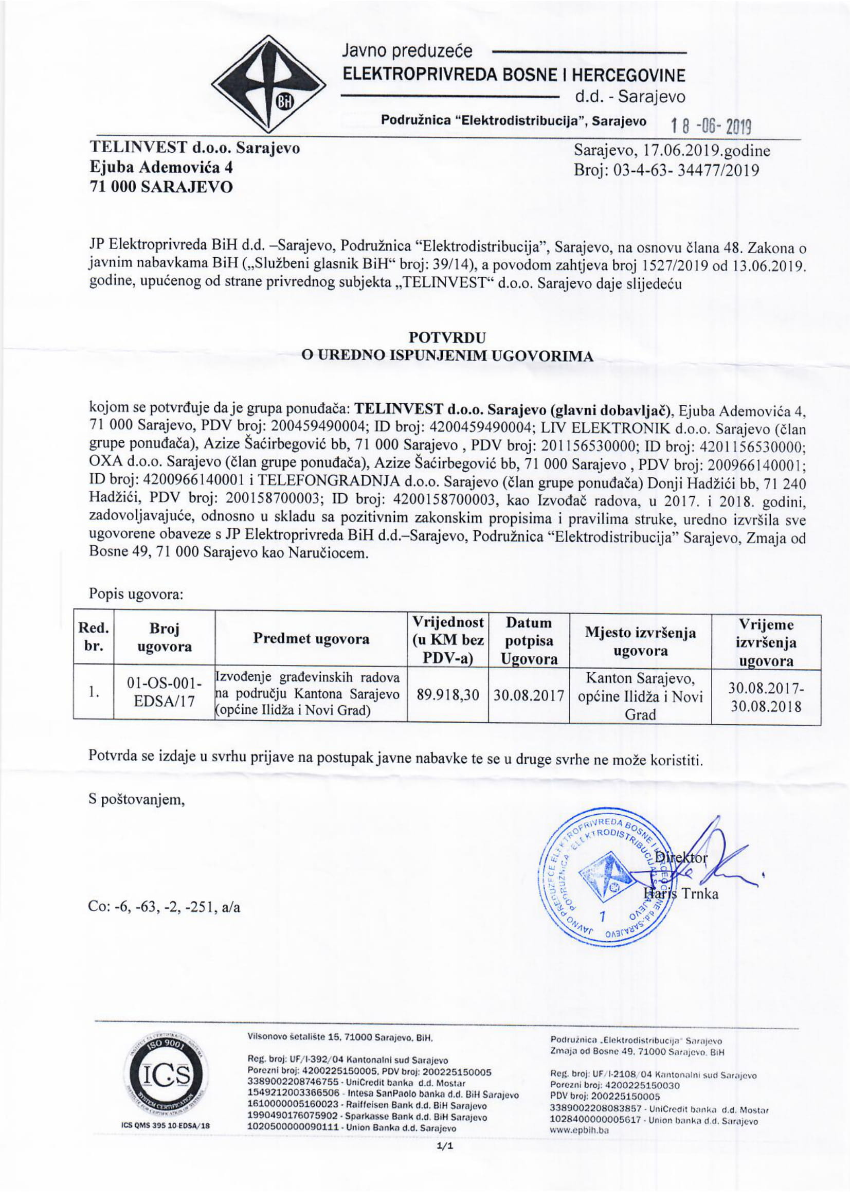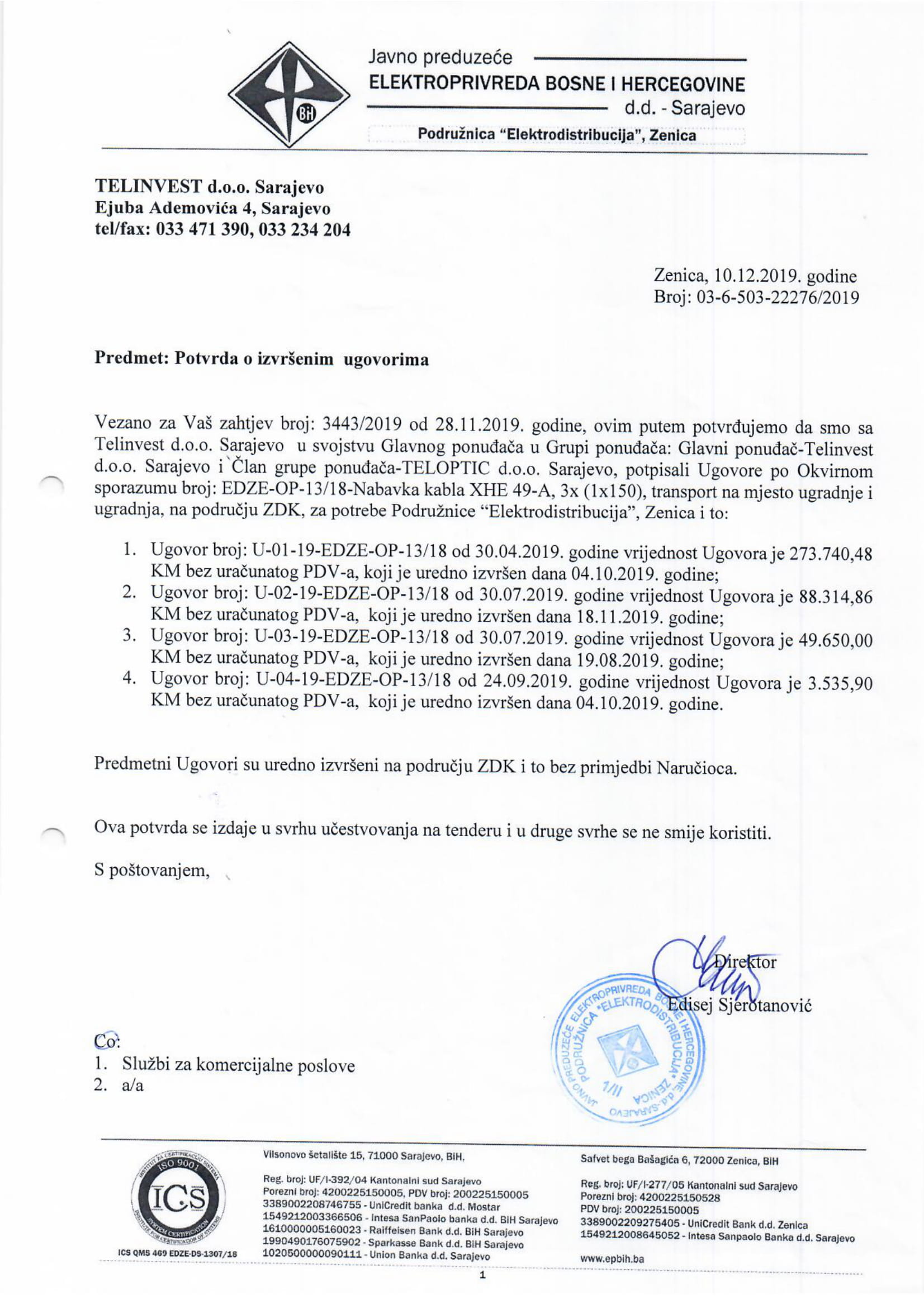 JP ELEKTROPRIVREDA BiH D.D ELEKTRODISTRIBUCIJA SARAJEVO
